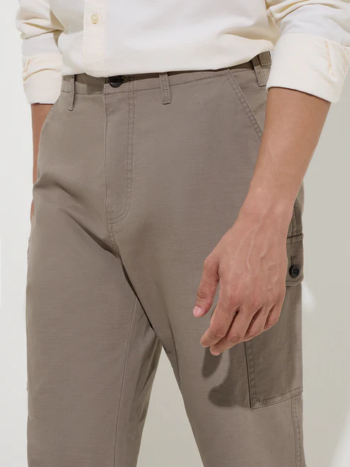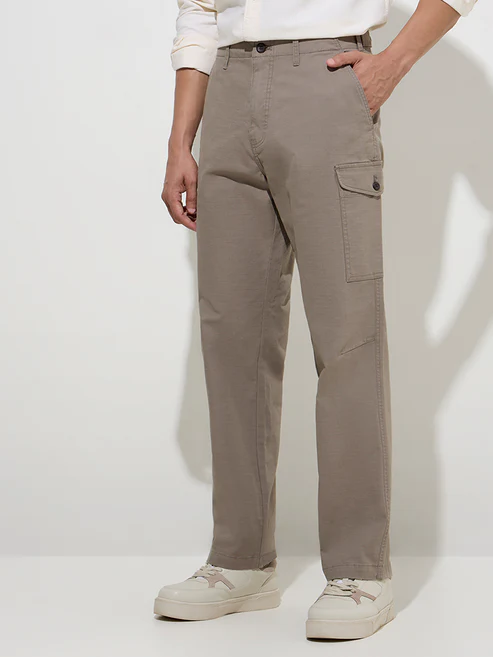 Brown Relaxed Fit Casual Trousers For Men quantity