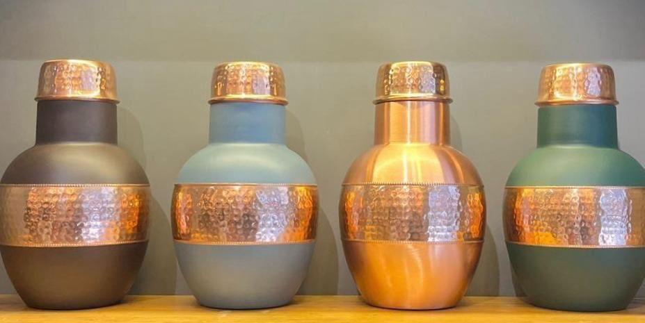 Smooth satin-finish copper bottles with a refined golden tone.