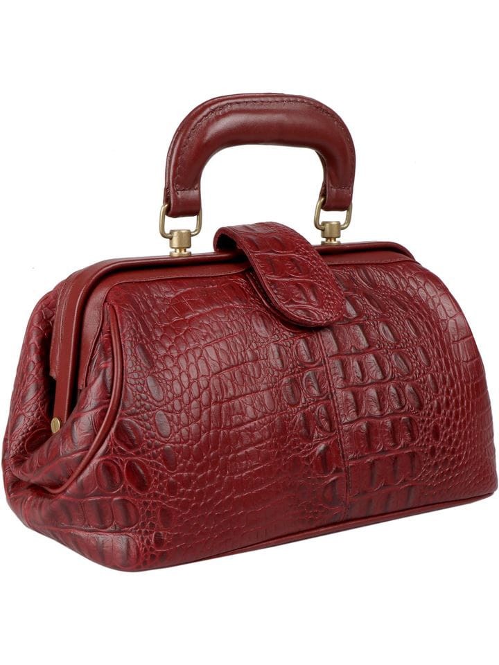 + Free ShippingA striking crimson red leather handbag with embossed crocodile texture and a vintage doctor-bag-style frame. Features a solid top handle, structured base, and polished gold-toned hardware. A luxurious accessory that blends timeless elegance with modern flair.