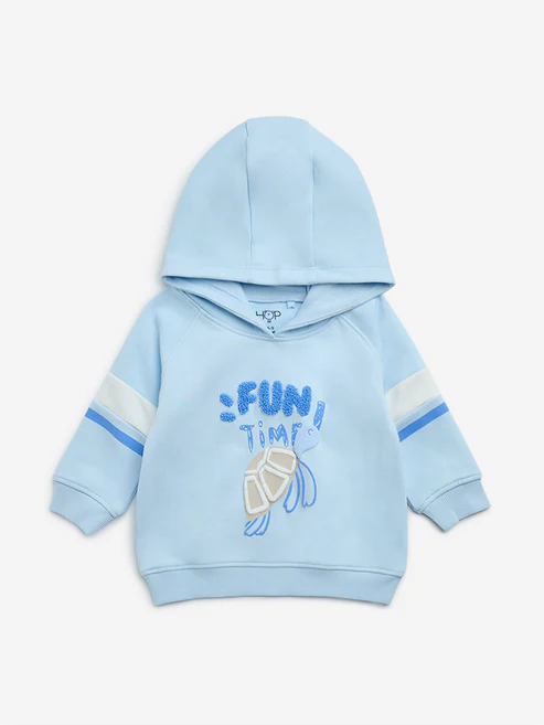 HOP Baby Blue Text Design Cotton-Blend Hoodie