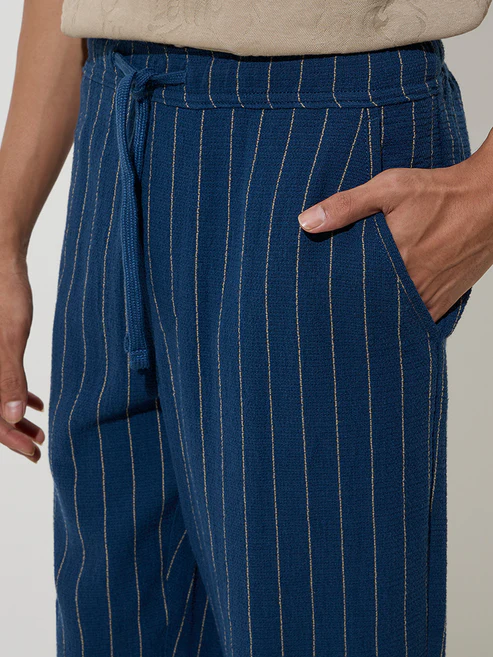 / Navy Blue with White Stripes Formal Trousers for Men