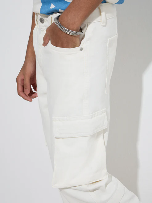 Y&F Kids Off-White Cargo-Style Relaxed-Fit Mid-Rise Jeans